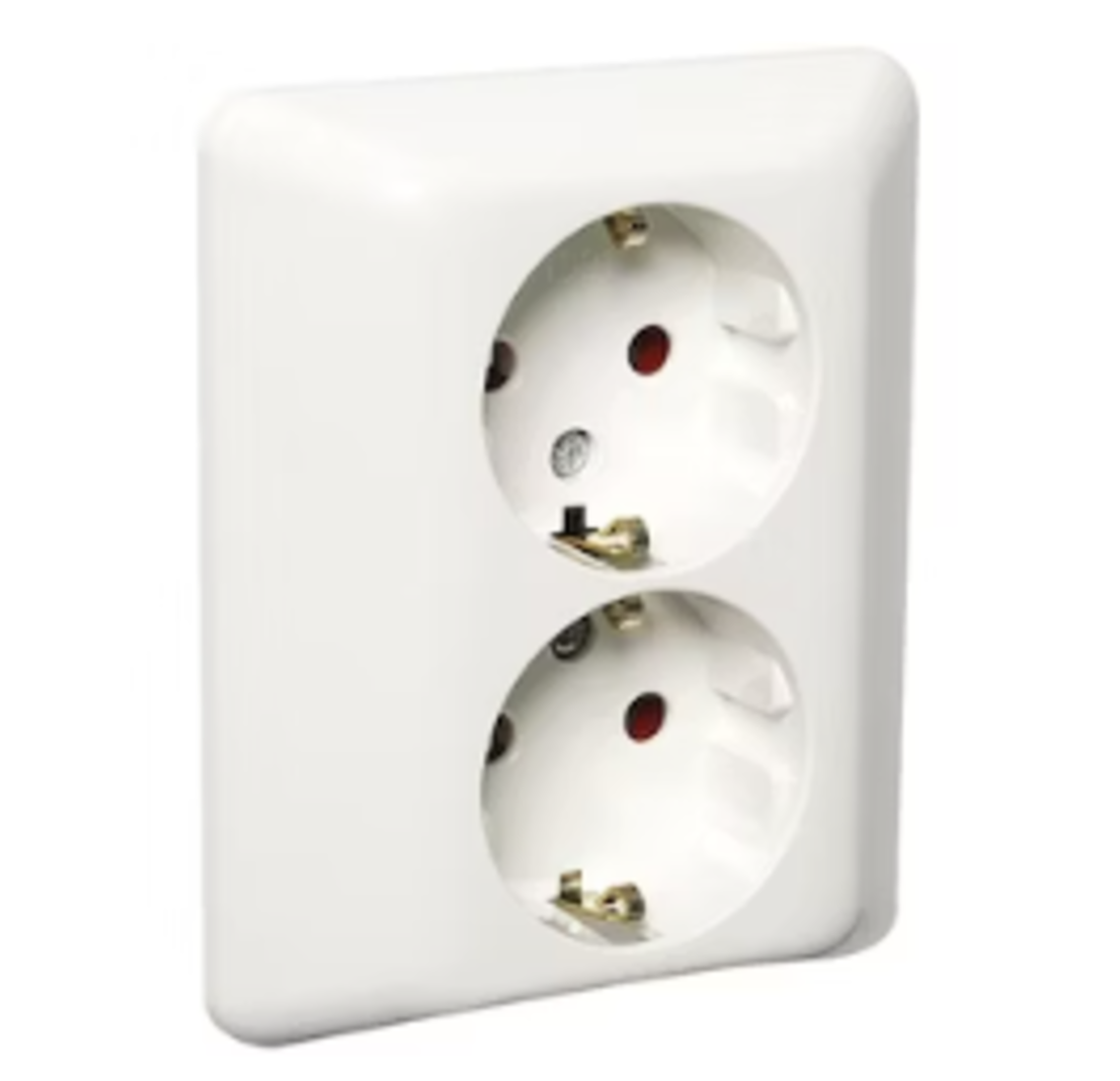 Dobbel jordet stikkontakt innfelt med hel dekkplate og barnevern.