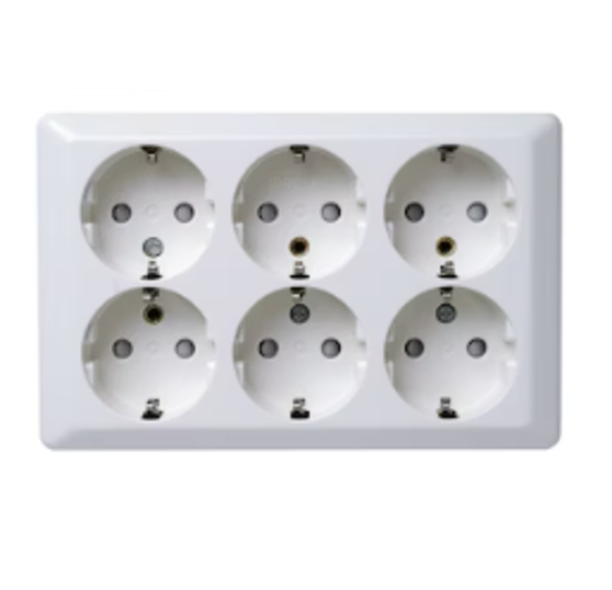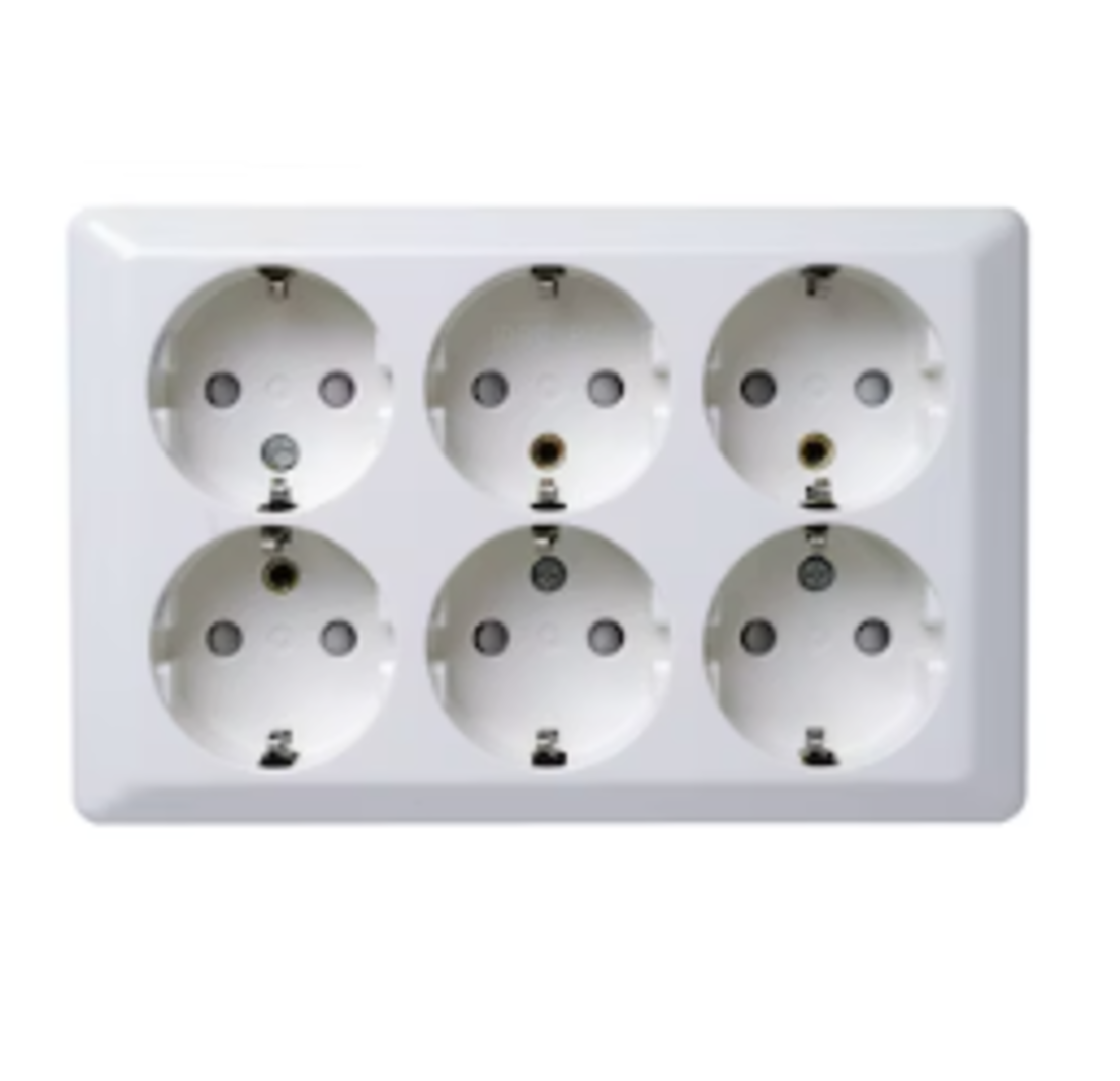 RS Nordic 6-veis stikkontakt med jord, og barnevern for påveggsmontering.