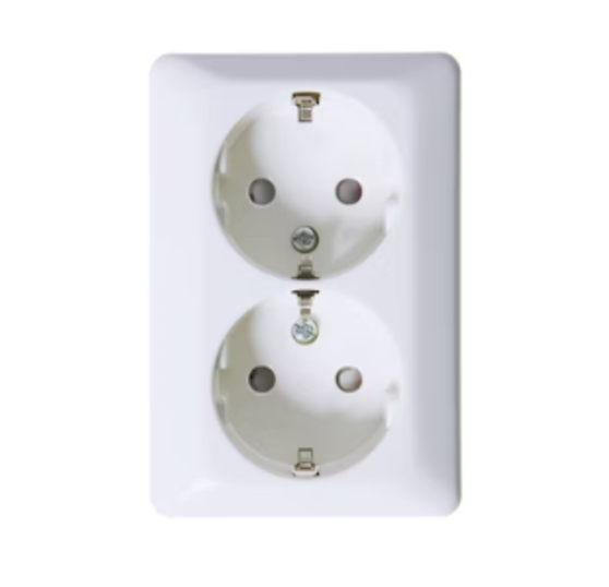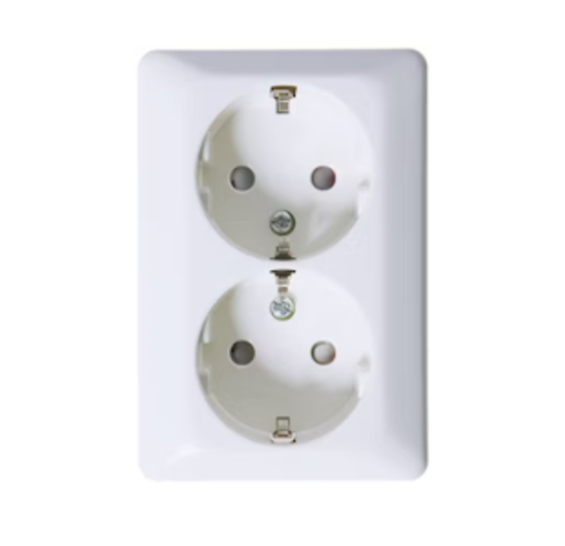 RS Nordic dobbel stikkontakt påvegg med jord, med barnevern.